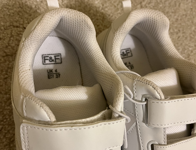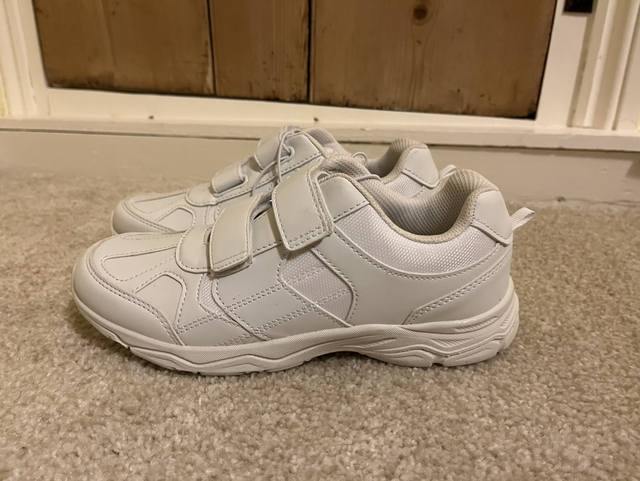 White PE trainers size 4 UK (EU37)